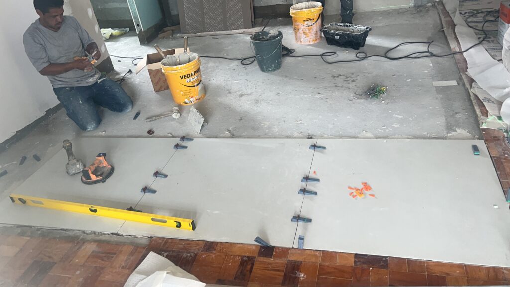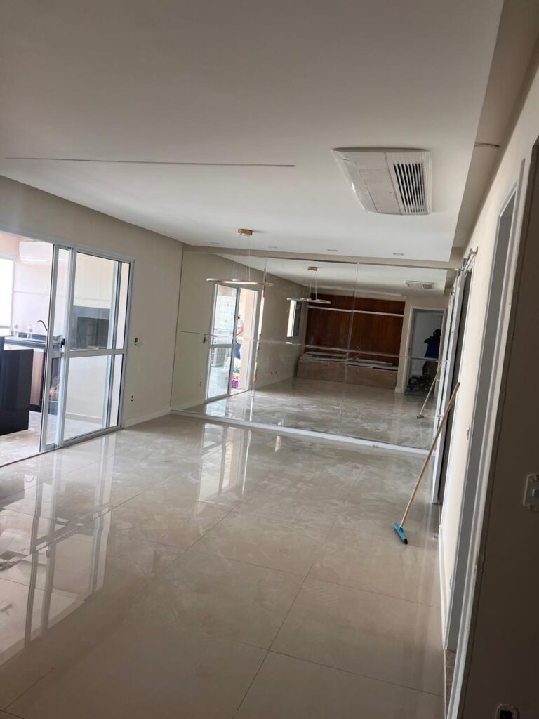 Aprovação junto ao condomínio, toda documentação técnica (ART/RRT), coordenação de fornecedores, limpeza diária obrigatória. Você só se preocupa com as decisões importantes.